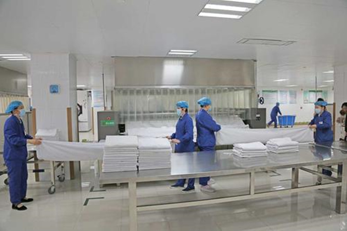 醫(yī)院的布草洗滌交叉感染是控制傳染的首要源頭,與賓館不同的是,布草在出醫(yī)院之前就要進行嚴格的分揀,要按照感染病和非感染病進行區(qū)分,此外,對于不同人穿的病號服也要進行分開,比如醫(yī)生和病人的制服,小孩子和新生兒的布草等都需要進行分散隔離包裝,最重要的一步是要進行消菌處理,并盡快進行清洗。洗滌前洗滌企業(yè)對醫(yī)院分揀過的布草按類別再行分揀,按布草質地、顏色、污垢類型、污垢程度等,均分開隔離洗滌。根據(jù)不同布草情況選用合適的洗滌劑洗滌。并且在清洗過程中,人流、物流、潔污分開。物流由洗滌區(qū)→烘干熨燙區(qū)→折疊區(qū)→潔凈布草存放區(qū)分別組成。臟污布草與潔凈布草操作人員嚴格分工,防止操作人員對潔凈布草的二次污染。